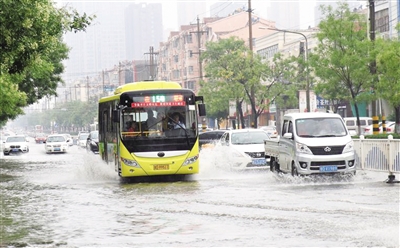 7月10日,车辆在雨中缓慢前行。当日,枣庄突降暴雨,据市气象局数据,从9日零时到10日9时,平均降雨量为76.2毫米,达暴雨级别,全市旱情解除。这次降雨主要集中在中部和南部,由于局部地区雨量较大,城区部分路段形成了积水。 (记者 王震 摄)