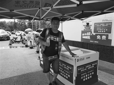 晚报讯 (记者 安卿超 摄影报道)8日,记者在新城居然之家附近看到一个写有“居然之家爱心补给站”的冰柜,走近一看,里面装了满满当当的饮品。该公司业务部经理表示,“天气炎热,环卫工、外卖员、交警、快递员仍在烈日下为大家服务,他们的行为让人感动。为了表示感谢,我们在此设置一台冰柜,里面放有冷饮,希望能够为他们带来一丝清凉。”