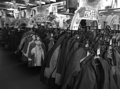 随后,记者在薛城区永福路附近的一家服装店看到,店内“黄金位置”摆放的全是反季打折服装,店长称,这些反季服装的折扣从三折到五折不等,多数都是品牌服装,反季服装处理完之后,店里的冬季服装主要以新款为主,反季服装搞促销并不影响冬季服装的正常销售。“现在是反季服装销售的最后时期,多数商家都已经给出了最低的折扣,用最低的价格吸引顾客。”薛城区永兴路一服装店的负责人说,虽然商家的促销力度不小,但是店里的反季服装销售区却没有多少顾客,多数顾客光看不买。