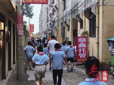 中午放学时,不少学生径直拐进了学校北侧的一栋宿舍楼内,门口被围得水泄不通。“我们住的市中区教育局教师宿舍楼是一座独楼,全楼8个单元共80户居民,目前约有200人居住,由于周边拆迁改造,学校附近的小餐桌陆陆续续都搬进这栋楼了,粗略统计了一下,入驻的小餐桌差不多二十几家,每家小餐桌基本上都有三四十个孩子,一到中午熙来攘往的全是学生,扰乱了我们的正常生活。”一名住户说。
