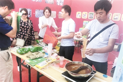 眼下地瓜粉条深受消费者欢迎,但市面上的各种地瓜粉条让消费者挑花了眼。为了让消费者买到货真价实的地瓜粉条,商家别出心裁在店铺里专门将粉条煮熟让消费者尝着买,这一做法,还真吸引了不少购买者。 (记者 孙慧英 摄)