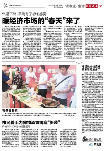 市民着手为宠物添置御寒“新装”
