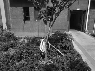 陈女士向记者介绍,她所住的小区内绿化一直都很不错,小区居民也很少在院落里乱放东西,走在小区内,感觉非常舒服。可是最近几天,陈女士在小区院落里溜达,发现有人扯绳晒被子,或者把拖把挂在树上,这种行为让陈女士觉得不妥。