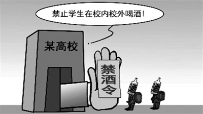 陕西西安翻译学院新规定,禁止学生在校内校外喝酒,平时会有学校相关人员在校门口检查学生是否喝酒。不可否认的是,社会中的“酒桌文化”也浸淫至在校学生,遏制不良聚餐社交之风蔓延,不妨从禁酒令开始。