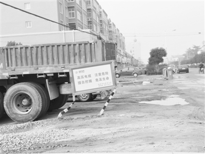 近日,记者在峄城区坛山新居小区东侧的空地上,看到路边有一个安全提示牌。但是牌子的两个支撑柱都严重变形,提示牌倾斜。“这片空地上有机动车停放,提示牌应该是这些车给撞的。”市民陈先生说。 (记者 李帅 摄)