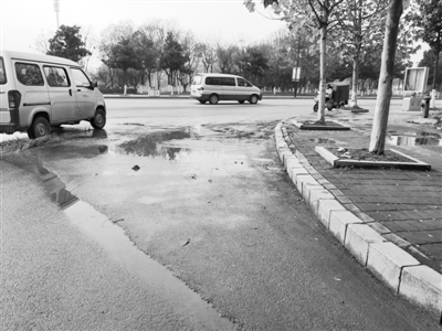“路边有一个消火栓,一些洒水车时常在这里接水,这里地势较低,接水过程中漏出来的水就存在这里了。夏天的时候存点水没什么大碍,但是冬天就不一样了。刚看了天气预报,最近一个星期气温就会降到零下,到时候这里结了冰,就会给过往市民带来危险。”市民张先生说。他希望洒水车在接水的过程中要注意一些,不要把水漏出来,另外也提醒市民经过这里时要注意防滑。