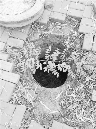 山亭区丰泽湖旁边的人行道上,近段时间出现了一个“陷阱”。窨井盖被丢到了一边,周围的地砖也有缺损,附近没有路灯,居民晚上出行很危险。