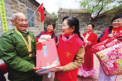 近日,薛城区老年体协50多名志愿者,带着棉被、衣服、油面等物品来到山亭区徐庄镇葫芦套村,看望村里的抗战老兵、老党员和贫困户,并演出了自编自演的文艺节目,送去了大家一片关爱之情。