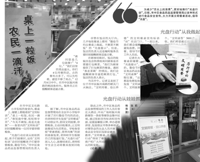 虽然在饭店的大厅内,几乎每张餐桌上都有“勤俭节约从餐桌上做起,不剩菜不剩饭”的“光盘提示”,但是,饭店的负责人还是嘱咐服务员要时刻提醒顾客适量点餐。