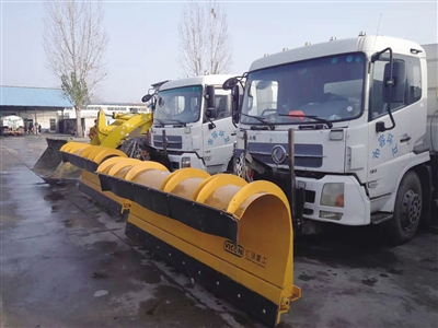 12月10日,我市大部分区域出现了降雪。市中区环卫部门成立了150余人组成的应急小分队和650余名保洁员组成的清雪队伍,配备了除雪车4辆、铲车3辆、后勤保障车4辆,融雪盐10吨,24小时待命,确保市民出行安全。 (记者 王龙飞 摄)