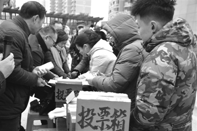 晚报讯 (本报记者 摄影报道)12月9日下午,在薛城区泰山路附近一小区的广场上,聚集了很多业主,他们聚集在这里监督业主委员会唱票,根据选票决定来年是否更换物业。