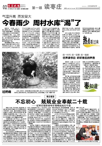 据该管理处负责人介绍,从数据上来看,周村水库2012年3月份初的水位是125.11米,库容3438万立方米,4月份仍有3428万立方米库容,由于2015年和2016年降雨过于平均,未形成有效库容,2016年3月初的库容仅为1121万立方米,后经过2017和2018年雨季补水,这两年库容有所提高,几乎恢复到历年正常水平。从历史数据来看,春季一直是水库水位较低的季节,历史水位多为3500万立方米左右。今年,由于天气干燥蒸发强,水库每日都会蒸发掉1万立方米左右的水源。“尤其是进入4月份,日蒸发量达到了1.5万立方米,如今气温逐渐升高,城市供水量已达到最大化,蒸发量加上日供水量,周村水库每日需消耗7万立方米的水量。虽然前段时间有一次较为明显的降雨,但补水情况并不明显,眼下这个水位,较历史同期还是偏少了许多。”该负责人说,“今年3月初,周村库容为2196万立方米,截止到今天,库容是1900万立方米,可供水量为1200万立方米。如果一直保持这个库容,正常供水还可持续160天左右,情况不是十分乐观。但好在雨季马上来临,供水应当不成问题。”
