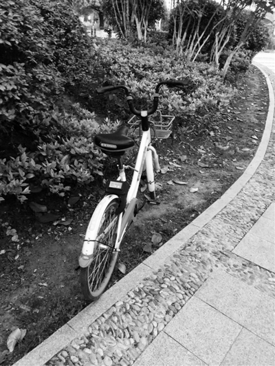 ◀近日,记者在新城龙潭公园看到,多辆单车乱停放,既影响了公园的美观,又耽误他人骑行。