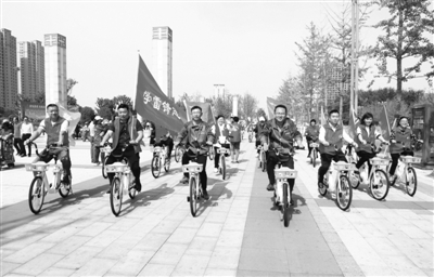 昨日上午,滕州市共享助力式公共自行车启用仪式在市民广场举行,首批助力式公共自行车投入运行。据了解,共享助力式公共自行车将根据市民出行需要陆续投放,预计将达到3000辆,建设停放站点300个。 (特约记者 侯志龙 苗原 摄)