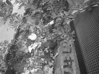 5月13日下午,记者在振兴路与吉品街的交会路口见到了孙先生所说的“垃圾点”。绿化带内的大部分绿植长势很好,可是,由于生活垃圾的“侵入”,部分绿植已经枯萎。绿化带用栅栏围了起来,远看很是美观,可走近一看,绿化带内有用过的卫生纸、喝过的饮料瓶等垃圾,让具有美化城市环境作用的绿化带失去了美感。