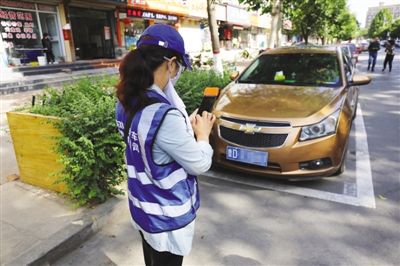 晚报讯 (记者 王正 通讯员 周亚文 摄影报道)“车辆停到车位上就开始计费,等到车辆离开后我们就终止时间,工作人员会过来进行收费。今天是收费的第一天,主要是以告知为主。”昨日,本报曾多次报道的市中区智能泊车系统正式启用。早上8点多,停车位上几乎停满了车辆。由于是早高峰,多是一辆车刚从停车位上离开,另一辆车就填补进来。车辆进入后,车位上的地磁感应器会自动感应,附近的收费人员过来进行拍照后就计时了。