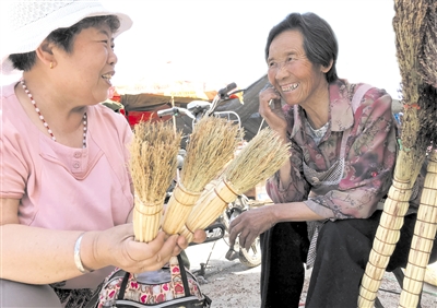 市中区齐村镇杨岭村72岁的陈景花老人,用高粱秸秆制作出刷头短的改良型锅刷,使用起来十分方便,深受不少市民欢迎。 (记者 孙慧英 摄)