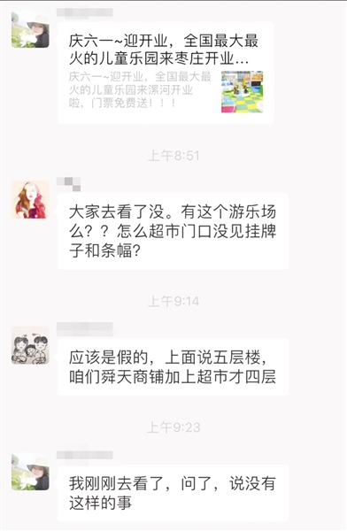 “我在朋友圈中看到这篇文章被很多人转发,我就打开看了看,最初我不打算转发的,后来我看到这个新建的儿童乐园所在地就在新城的某大型超市内,距离我家很近,所以我就转发了。后来我去该大型超市买东西,心想去看看这全国最火最大的儿童乐园到底什么样,没想到转了好久都没看到,超市的工作人员告诉我,他们超市根本没有这个儿童乐园,我这才知道这文章是假的。”范女士说。