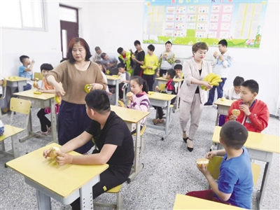 近日,多位爱心人士带着糕点、水果等礼品,来到台儿庄区特教中心看望孩子们。 (记者 孔浩 通讯员 黄振 摄)