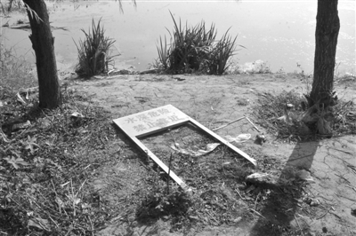 近日,市民张先生拨打本报热线电话反映,市中区九龙湾湿地公园内的一个警示牌,被人故意破坏,倒在了地上,希望有关部门及时扶正。(记者 孔浩 摄)