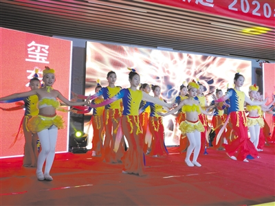 1月1日晚,市中区文化路街道和玺东学院联合举办了联欢晚会,歌舞、小品、曲艺等丰富多彩的文艺节目,深受社区居民欢迎。 (记者 孔浩 摄)