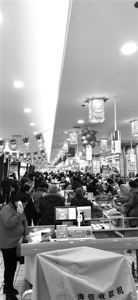 晚报讯 (记者 王正 摄影报道)进入2020年刚一个星期,随着春节的日益临近,我市的年味也越来越浓了。2日,记者调查发现,我市多个大型商超人满为患,销量也比往年增加了很多,饭店、酒店生意红火,“年中饭”也早早被预订完了。商家加大了打折、优惠宣传力度,挑起了市民的消费购买欲,我市的“春节经济”越来越热了。