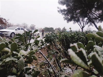 昨日中午,薛城、滕州、山亭等地迎来2020年第一场雪。由于地面温度依旧在0℃以上,雪花落下后多融化。预计本次降雪将持续到8日凌晨。 (记者 董艳 摄)